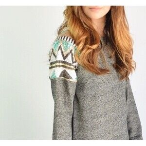 NWOT sequins grey aztec printed boho sweatshirt tunic dress size Medium.