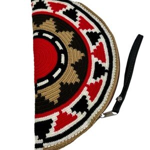 Aztec Handcrafted Woven Crochet Clutch Wristlet Half Circle Moon Zip Closure