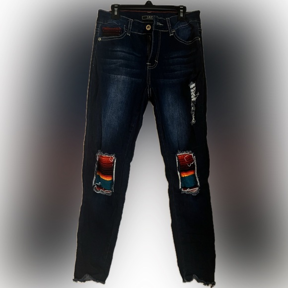 Straight legged/cropped skinny Jean with Aztec embellishments
