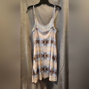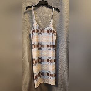 Stylish and comfortable, this dress features a unique geometric pattern in brown and cream. Perfect for any occasion.