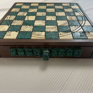 Aztec Mayan Calendar Malachite/Wood Green Chess Set VTG Read Description