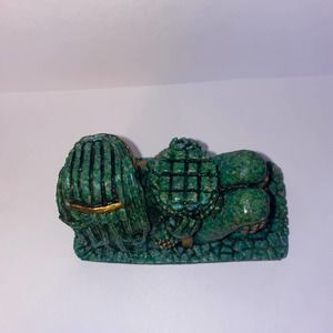 Aztec Mayan Zarebski God Crushed Malachite Statue with Gold Accents 4.3"x2.8