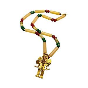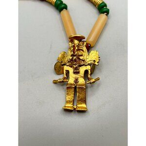 Aztec Necklace UFO Mayan Latin Mexico Indian Tribe Warrior Shaman Pendant Alien