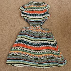 Never worn. UK size 10, US size 6. Fits true to size. The sides are out which makes the waist look amazing. Breathable and colorful material. Machine wash, do not dry.