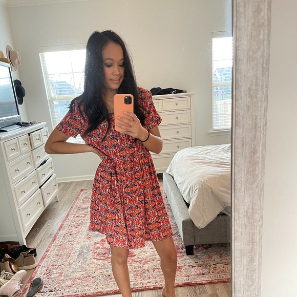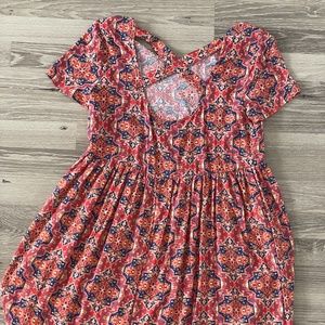 Baby doll style dress with a fun Aztec pattern! Has a criss cross back. Gently worn.