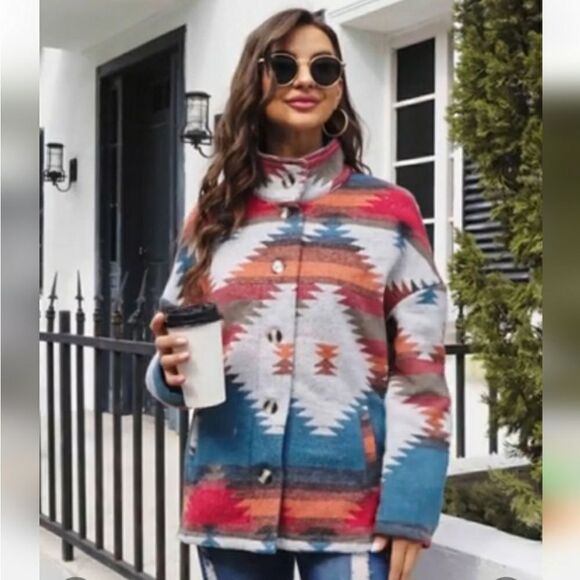 Aztec Pattern Ethnic Boho Coat Jacket Sz 14