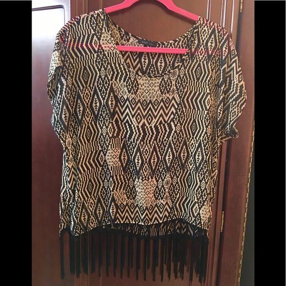 EUC. No flaws. Semi sheer. Fringe detail at bottom. Armpit to pit 22" Length through fringe 27"