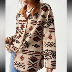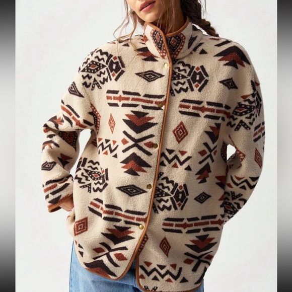 Stay cozy and stylish with this Aztec pattern long sleeve top. Perfect for any casual outing.