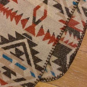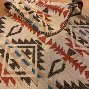Aztec pattern poncho - pullover with a button snap closure at the neck and decorative stitching on the edges