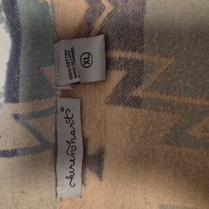Stylish quarter-zip pullover with an Aztec pattern. Features a blend of cream, blue, and pink colors.