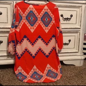 Beautiful Aztec pattern shirt. Longer in the back. Great with skinny jeans!