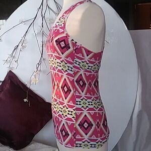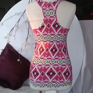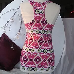 Soft, stretchy racer back tank top with Aztec style pattern with pink, black, yellow, and white. In like new condition.