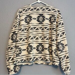 Stylish cardigan featuring an Aztec pattern. Button closure for a classic look. Perfect for layering.