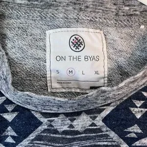 Stylish sweater with an Aztec pattern. Features a mix of blue and gray tones. Perfect for casual wear.