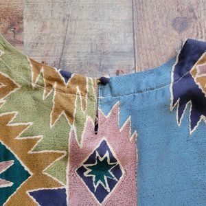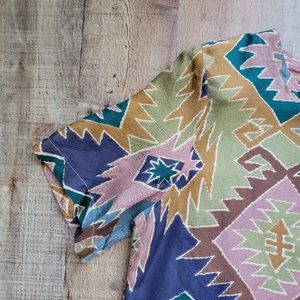Stunt Collection Aztec Print 100% Silk Short Sleeve Blouse