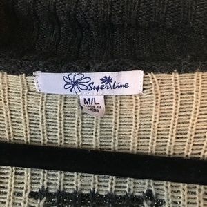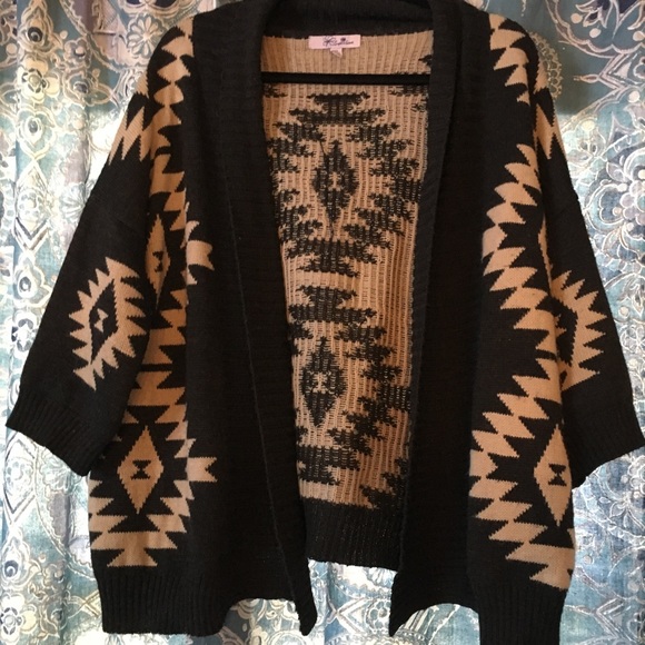 Dark gray and beige cardigan/sweater. Aztec print. 3/4 length sleeves. Size medium/large. Great condition!