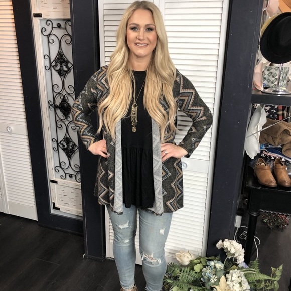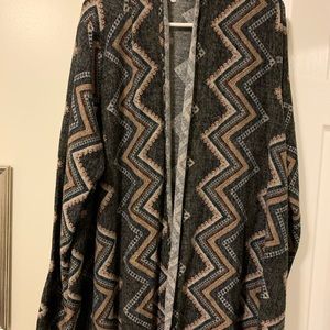 Soft and warm but also not heavy Pretty aztec print all along the sweater Smoke free home