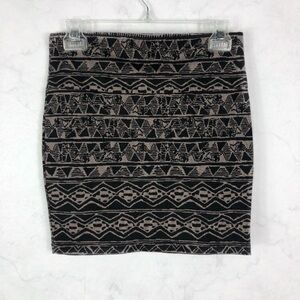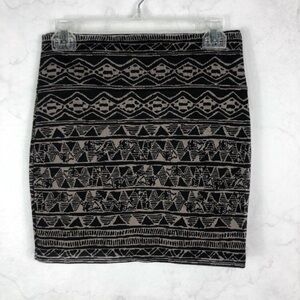 Body Central Aztec Geometric Printed Mini Skirt. Stretchy. No Stains or Rips. Cute & Comfy. Black & Tan Colors. (0289)