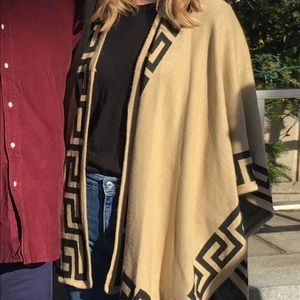 Beautiful brown poncho w/ black Aztec print detailing. Perfect for layering on a cool night or in the Fall. Lightly worn, great condition. Open to offers.