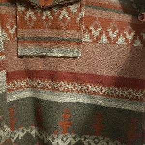 cozy grey and maroon aztec print shacket. relaxed fit. perfect for fall and winter!