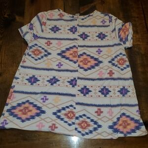 Aztec Print Short Sleeve T-shirt - Cream, Pink, Blue, Peach