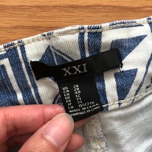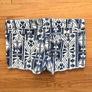 Aztec Tribal Geometric Print Shorts. Great used condition. White and blue. Waist 28. Forever 21.