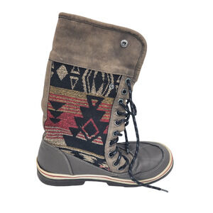 Aztec Print Snow Boots Warm Faux Fur Women Size 6/7 Synthetic Upper Boho Cozy Winter W22750