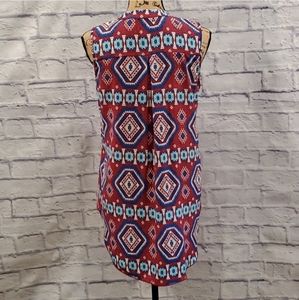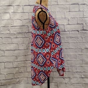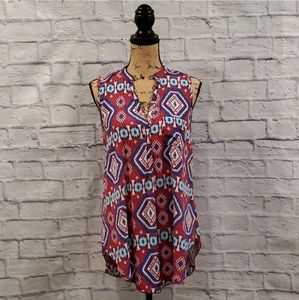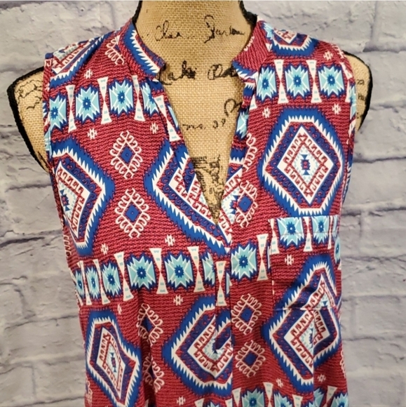 Cute tank with an excellent print in bold colors. Looks great with jeans or under a blazer!