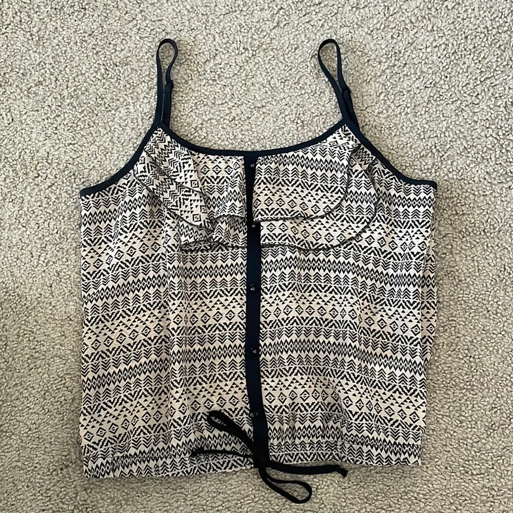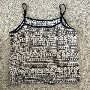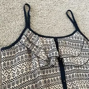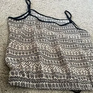 Aztec Print Tank Top. Elastic around the waist. Adjustable straps. Tie around the waist does not tighten the waistband.