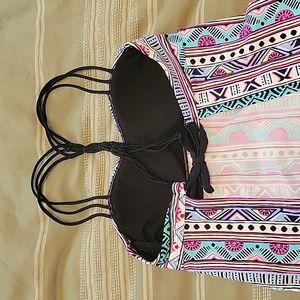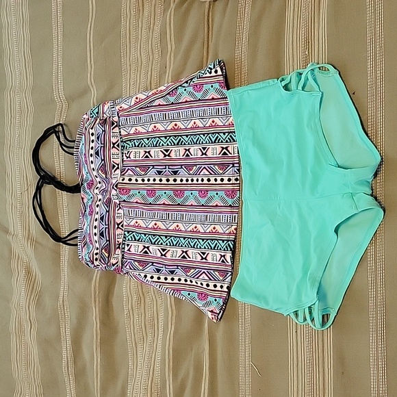 Aztec Print Tankini - Top is size M and Bottom is size L. Bottoms have a cute criss cross on each side. Top opens up in the back but offers full coverage in the front.