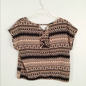A black and white Aztec print top with a criss cross open back. It has been worn only once. It's in fabulous condition!!
