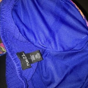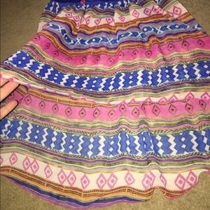 Strapless Bright colorful aztec ish designed tube top! Love the material of the bottom half of the top and as you can see hopefully the shirt is longer in the back. Has padded material in the chest area. Super cute and only worn a couple times ! :)