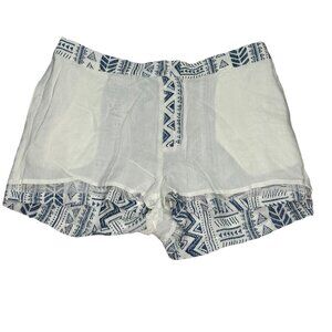 Aztec Print Womens Shorts L High Rise Pockets Elastic Waist Blue White