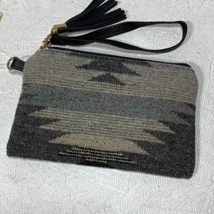 Aztec Print Wristlet Tassel & Strap Tan Brown Southwestern Style by LIB New York