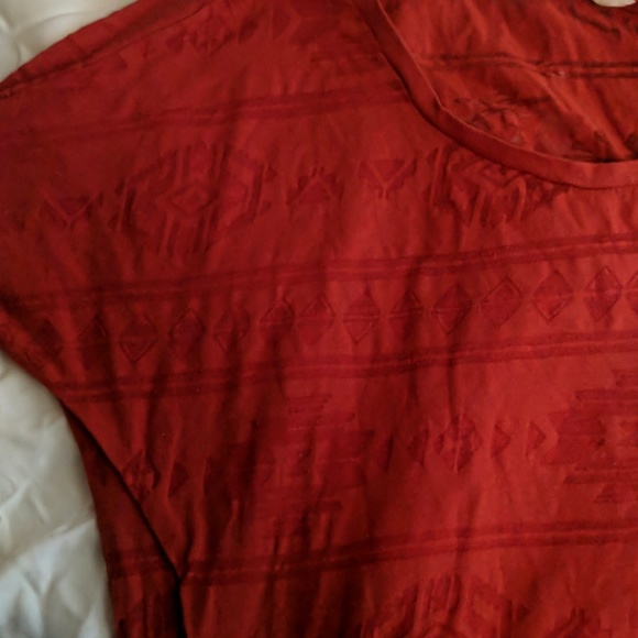 Very light weight red Old Navy shirt with quarter length sleeves and fun tribal pattern. Worn.