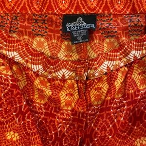 Bright orange aztec shorts. Zipper and button. Pockets on either side.