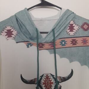 Aztec SouthWestern Lightweight Hoodie Mens M White Cow Skull Western