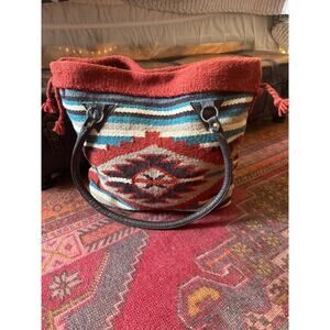 Aztec Southwest Large Wool Woven Rug Carpet Bag Bohemian Tote