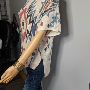 Adorable cream Aztec sweater. Has designs on it that are rust navy blue black and cream size small no rips, stains and from a smoke-free home.