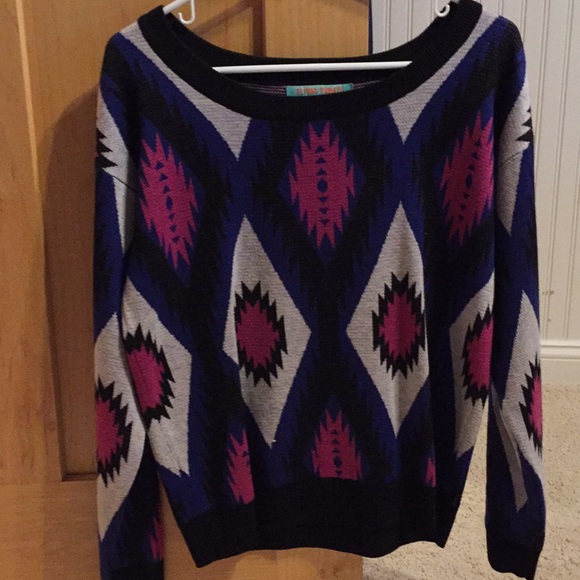 Medium Aztec Style Sweater. Two snags on lower front corner and back shoulder (show in photos)