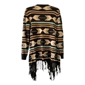 Aztec Tasssel Open Front Cardigan Best Size XL