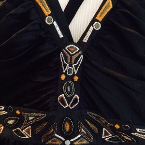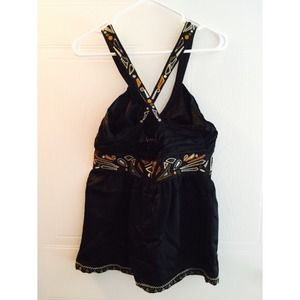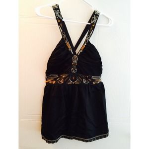 Elegant black top, with Aztec design in the front. It cris-crosses in the back, for an even sexier look!