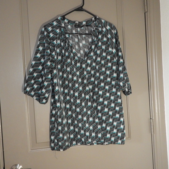 This is a silk material Aztec print top. Can be worn to work or to after hours date night.