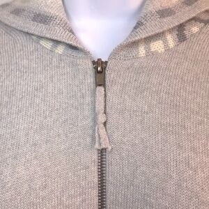 Aztec Tribal Print Gray & White thick full zip hooded sweater est sz M in EUC