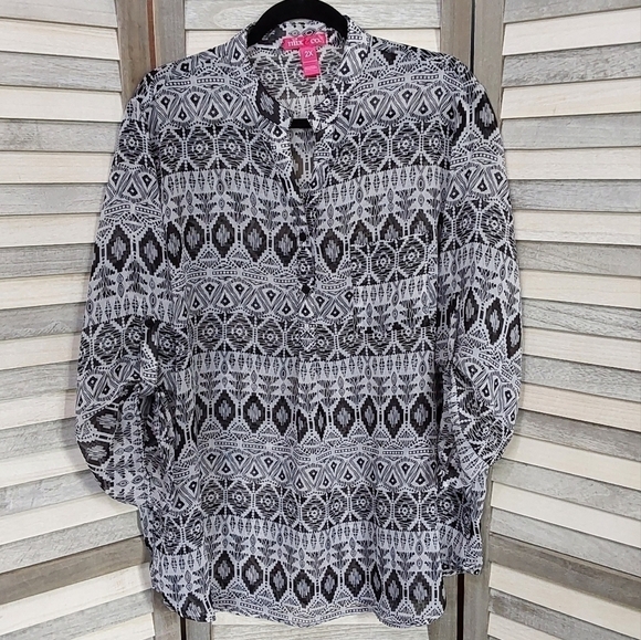 Aztec Tribal Print Sheer Blouse | Mix & Co. | 2X