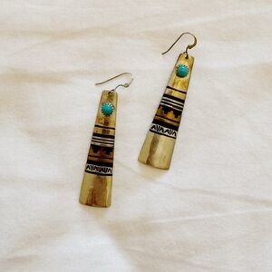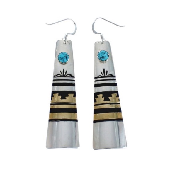 Native American Sterling Silver 12 Karat Gold Filled And Turquoise Hook Dangle Earrings. Bohemian dangle earrings bought in Arizona.