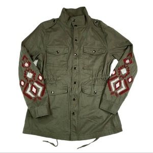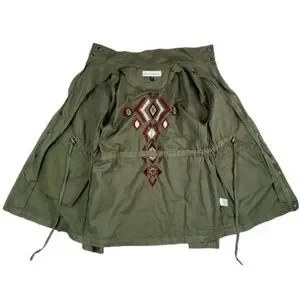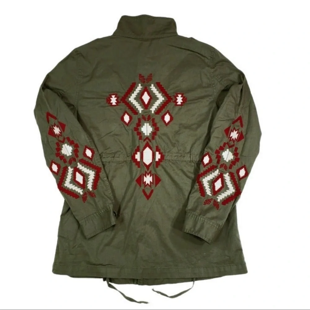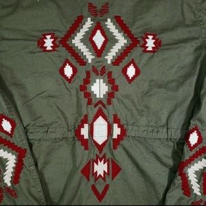 Army Green with Red and White Enroidery Aztec Southwestern Embroidered Patterns