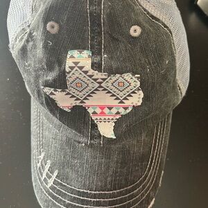 Stylish gray cap featuring a Texas graphic with colorful Aztec patterns.