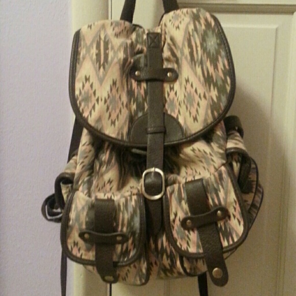 Pretty Aztec pattern backpack with 4 small compartments. Good condition.