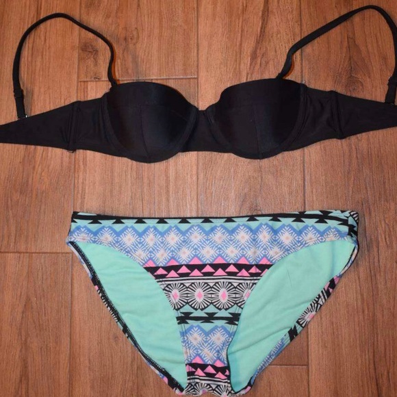 Black underwire swim top, small. Small Aztec print bottoms.